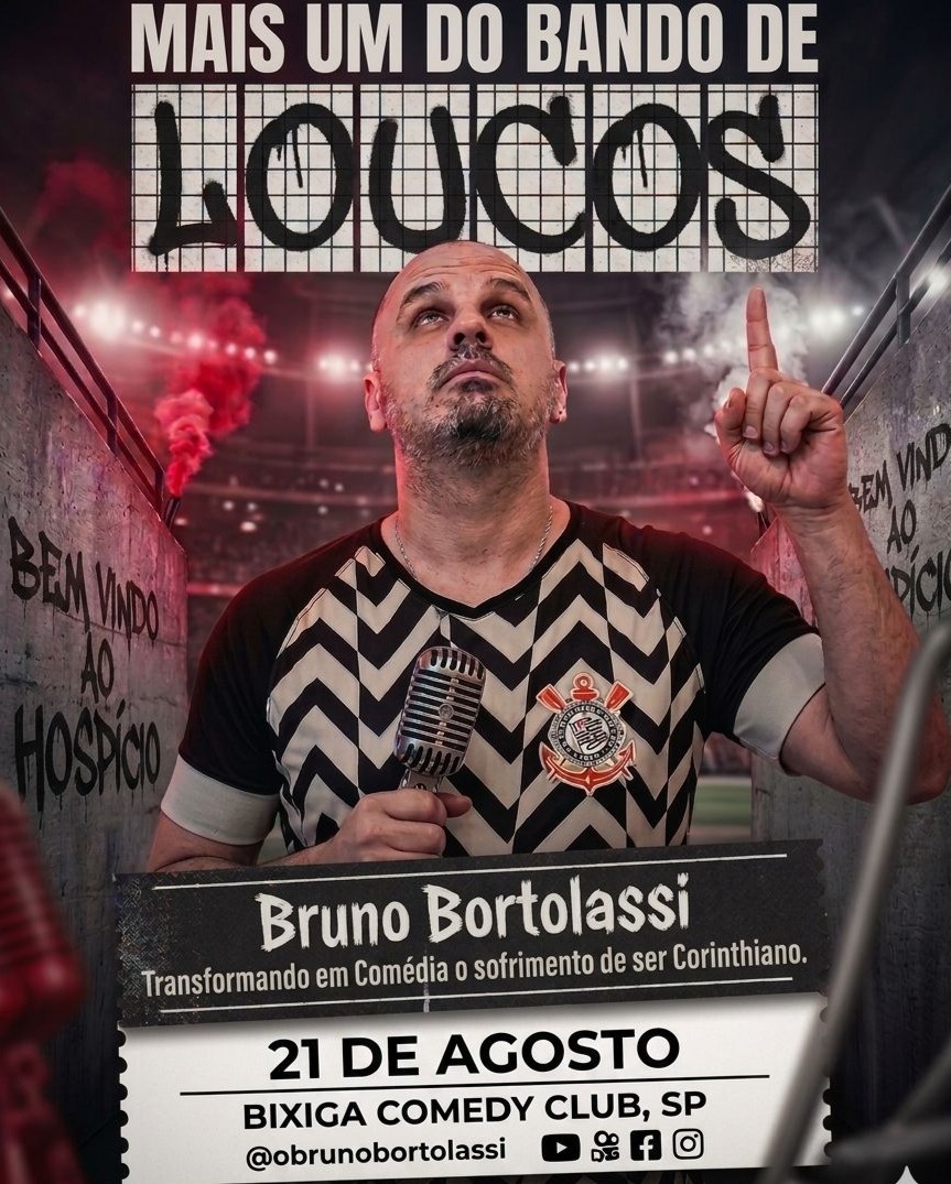 Ser corinthiano não é apenas torcer para um time, é um estado de espírito (muitas vezes de espírito obsessor!). É saber que o jogo só acaba quando o juiz apita, mas o sofrimento... esse é vitalício. Neste show de stand-up, Bruno Bortolassi disseca com muito humor a rotina de quem vive entre o céu e o inferno. Da angústia de um jogo de quarta-feira à noite à loucura de explicar para quem não é da "Fiel" por que a gente ainda insiste. Prepare-se para rir das nossas próprias tragédias e celebrar o que nos une: a capacidade de transformar o sufoco em piada. Se você é corinthiano, venha se sentir em casa. Se não é, venha entender por que dizem que a gente é louco!