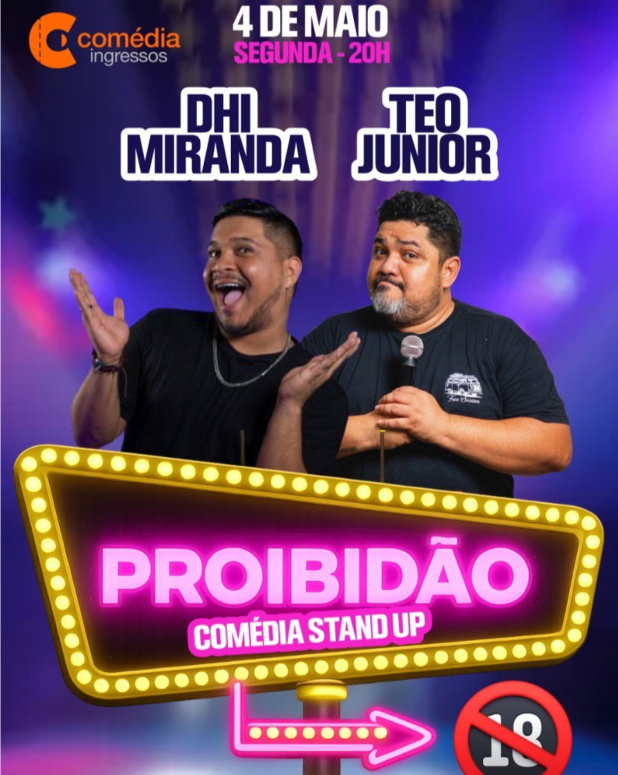 Prepare-se para uma noite sem filtro, sem censura e com muita risada! O espetáculo “Proibidão” chega com tudo para um show de stand-up direto, ousado e feito para quem curte humor sem limites. No palco, dois nomes que garantem o caos e a gargalhada: Dhi Miranda e Teo Junior, trazendo piadas afiadas, histórias absurdas e aquele humor que você só pode ouvir longe de menores… literalmente 😏 🚫 Proibido para menores de 18 anos 😂 Conteúdo pesado, risada garantida!