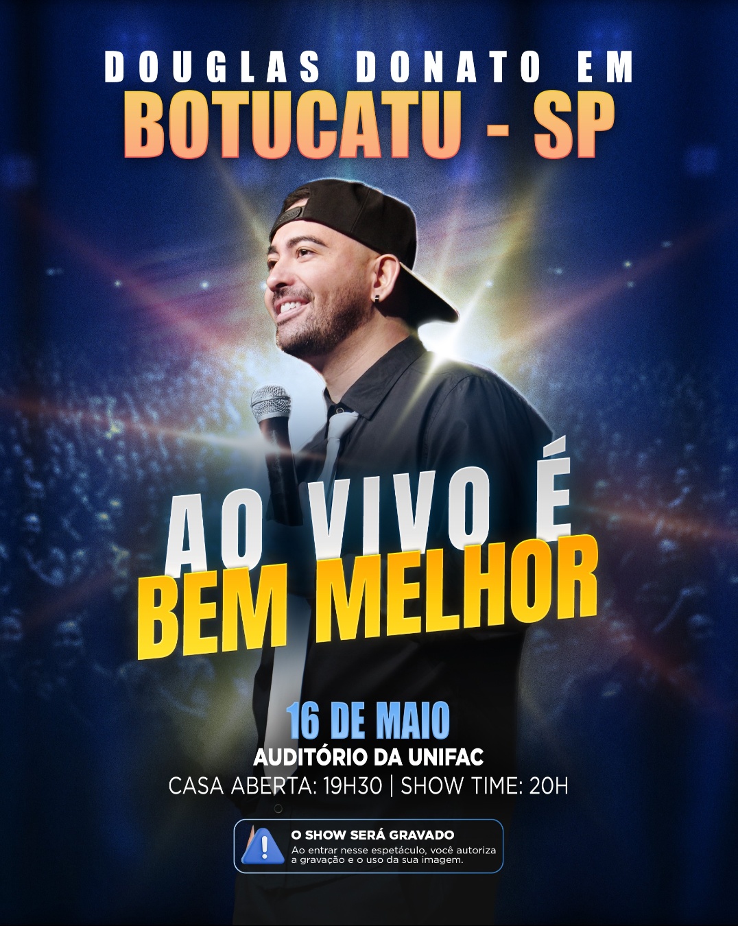 Se você já riu com os vídeos do Donato, se prepara... PORQUE AO VIVO É OUTRO NÍVEL. O novo show de Stand-up de Douglas Donato, “AO VIVO É BEM MELHOR”, é uma experiência que vai além da internet: Mais interativa, divertida e MUITO mais engraçada. Aqui, você não é só plateia…VOCÊ FAZ PARTE DO SHOW! Com um humor rápido, espontâneo e cheio de improviso, Donato transforma cada apresentação em algo único — e o melhor: No final, acontece o quadro que a galera ama… "DONATO ENTREVISTA", onde solteiros, solteiras, e até casais entram na roda, com perguntas e respostas inesperadas e muito divertidas. 😂 Risada garantida do começo ao fim 🎥 Show gravado (vai que você viraliza…) 🔥 Energia de show AO VIVO que não dá pra sentir na tela Se você já achou engraçado no Instagram/TikTok, espera só ver de perto. 👉 Porque ao vivo… É BEM MELHOR OBS - O INGRESO DUPLO é válido para 2 pessoas Dúvidas/Informações - (14) 99640-0819