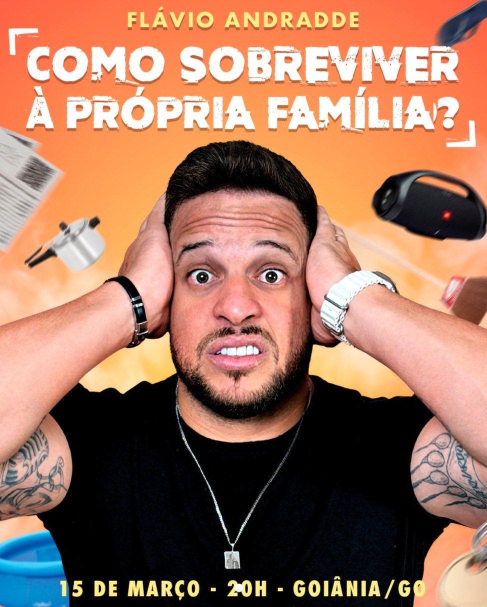 No show “como sobreviver à própria família?”, Flávio Andradde transforma situações familiares absurdas, constrangedoras e dolorosamente reais em uma noite de gargalhadas sem filtro. Pais, mães, irmãos, tios, sogros e aquela reunião que sempre dá errado viram matéria-prima para um stand-up afiado, direto e extremamente identificável. É aquele tipo de show que você ri porque já viveu — ou porque está vivendo agora. Com humor inteligente, histórias reais e muita presença de palco, Flávio entrega um espetáculo que conversa com adultos de todas as idades, especialmente quem já percebeu que crescer não resolve os problemas… só muda os boletos.
