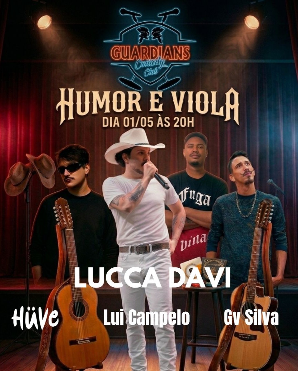 Prepare-se para uma noite única no Guardians Comedy Club, onde o riso encontra a música ao vivo em um espetáculo que mistura stand-up comedy com o melhor da viola! No dia 01 de maio, às 20h, o palco recebe Lucca Davi, trazendo seu talento e carisma em uma apresentação que une humor, música e interação com o público. Ao lado dele, Lui Campelo, GV Silva e Hüve completam o elenco com performances que transitam entre piadas afiadas, histórias do cotidiano e aquele toque especial da cultura brasileira. 🎶 Aqui, a viola não é só trilha sonora — ela faz parte da comédia. 😂 E o humor não é só piada — é experiência ao vivo, com energia de palco e conexão com a plateia. Se você gosta de dar risada e curte uma vibe musical diferente, esse show é pra você!