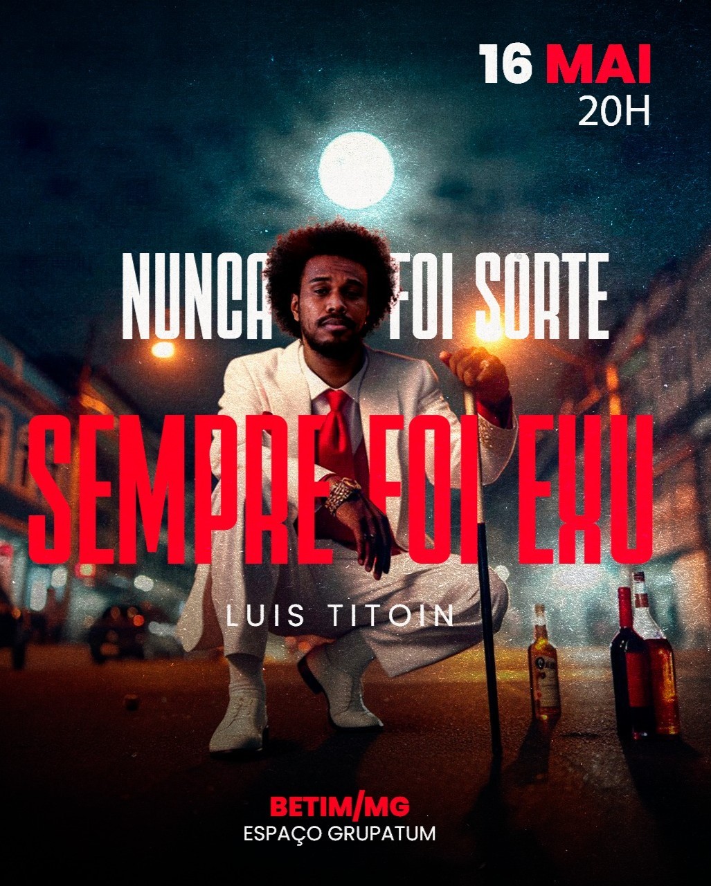 O humorista Luis Titoin desembarca em Betim com seu espetáculo solo “Sempre Foi Eu”, trazendo ao público uma apresentação envolvente, autêntica e repleta de personalidade. O show acontece no dia 16 de maio, às 20h, no Espaço Grupatum. Com um estilo único e presença marcante no palco, Titoin conduz a plateia por histórias pessoais, reflexões e situações do cotidiano, sempre com um humor afiado e inteligente. Em “Sempre Foi Eu”, o comediante mergulha em sua trajetória e identidade, criando uma conexão direta com o público por meio de um texto sincero, provocativo e cheio de atitude. A apresentação promete uma noite inesquecível, com muitas risadas e identificação, consolidando Luis Titoin como um dos nomes em ascensão no stand-up comedy nacional.