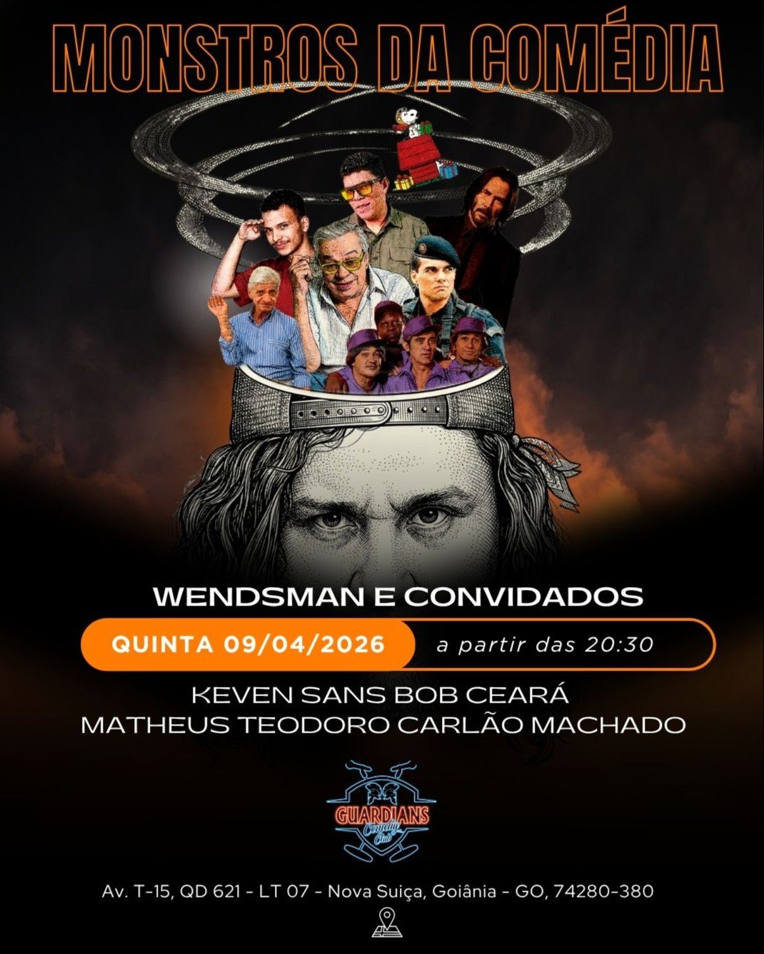 Prepare-se para uma noite insana de humor! O show “Monstros da Comédia” invade o palco do Guardians Comedy Club reunindo comediantes que são verdadeiras máquinas de fazer rir. Com apresentação de Wendsman e participação de convidados especiais, o espetáculo traz um line-up afiado com Keven Sans, Bob Ceará, Matheus Teodoro e Carlão Machado, garantindo uma mistura explosiva de estilos, improviso e piadas que vão do cotidiano ao absurdo. É aquele tipo de show sem freio, onde cada comediante entra pra entregar o máximo — e o público só precisa fazer uma coisa: rir sem parar.