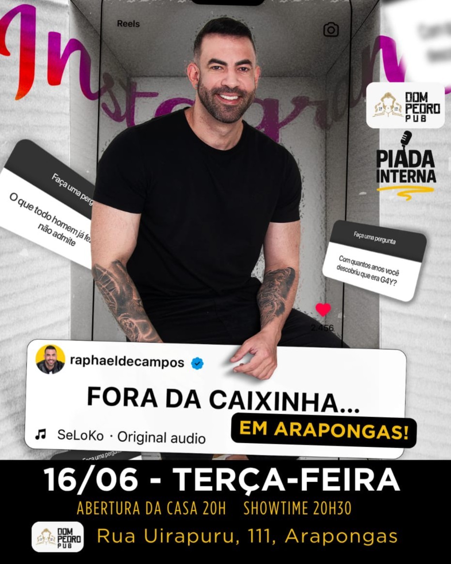 Já pensou em ir a um show de Stand-up Comedy e sair phd em atividades entre 4 paredes? Pois é, o Raphael é o cara que vai te passar as melhores dicas de como apimentar sua relação. Além disso, vai contar suas melhores histórias do seu dia a dia como um bom conselheiro. Venha e se divirta com esse cara pra lá de conhecedor.