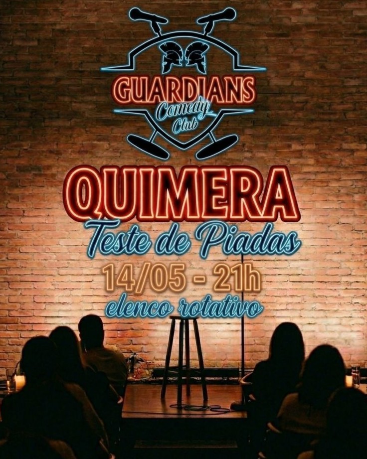 Prepare-se para uma noite diferente de tudo que você já viu no stand-up! No Quimera, o palco vira laboratório e as piadas estão em fase de criação — cruas, ousadas e imprevisíveis. É aqui que nascem os textos que depois você vai ver estourando nos grandes shows. Você assiste antes de todo mundo, participa da reação e faz parte do processo! Com elenco rotativo, cada apresentação é única. Nenhuma noite é igual à outra.