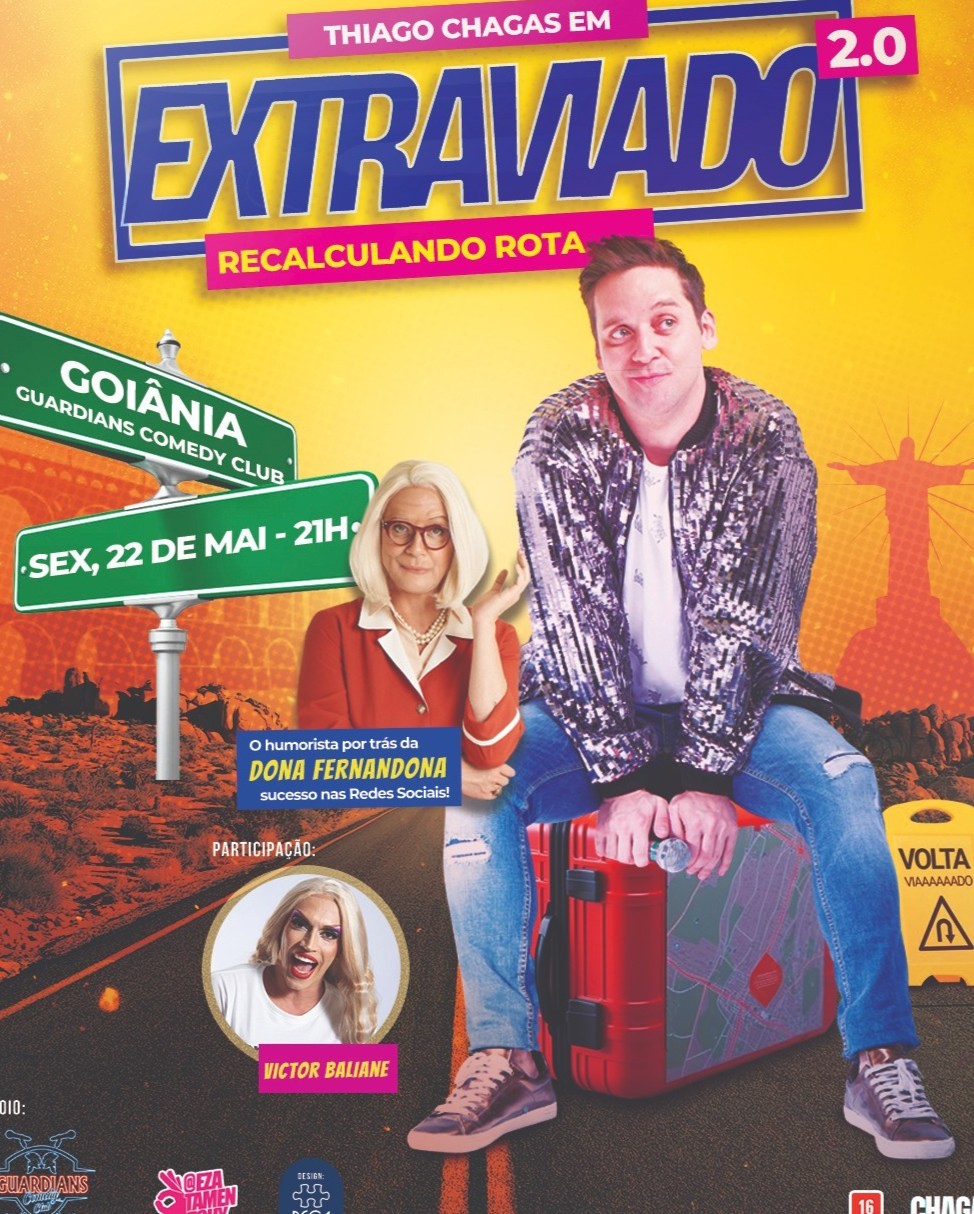 Um stand-up de quem já se perdeu, achou que tinha se achado, mas percebeu que o GPS da vida ainda estava sem sinal. Há 2 anos rodando o Brasil, lotando sessões e arrancando gargalhadas por onde passa, o solo de comédia de Thiago Chagas chega à sua nova fase: mais debochado, mais afiado e ainda mais conectado com o caos da vida real. Thiago, que viralizou nas redes com a personagem Dona Fernandona — uma divertida homenagem à Fernanda Montenegro — esteve recentemente em programas como Domingão com Huck, Vai Que Cola, Acerte ou Caia, com Tom Cavalcante. MesaCast BBB e Faustão na Band, convida o público a rir das rotas confusas da existência. “Extraviado” é uma autobiografia com purpurina emocional, onde o desvio é o próprio caminho. Um espetáculo que fala sobre família, fama na internet, sexualidade, sonhos que descarrilam e a vida como ela é — mas sempre pela ótica de um gay artista tentando entender o próprio GPS existencial. Não é só sobre estar perdido. É sobre encontrar graça na perda. Prepare-se para rir, pensar e (quem sabe) sair com um novo destino no Waze da alma.