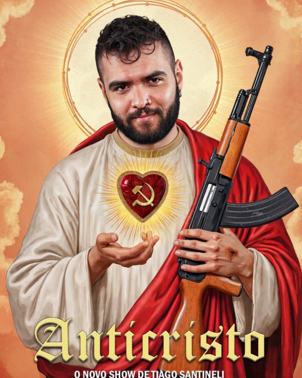 “Tiago Santineli está de volta! Após 26 anos dedicados a fé, ele traz para o palco uma perspectiva única sobre a fé, a dúvida e a busca por sentido. Prepare-se para uma noite de risadas, questionamentos e, quem sabe, um pouco de iluminação.”