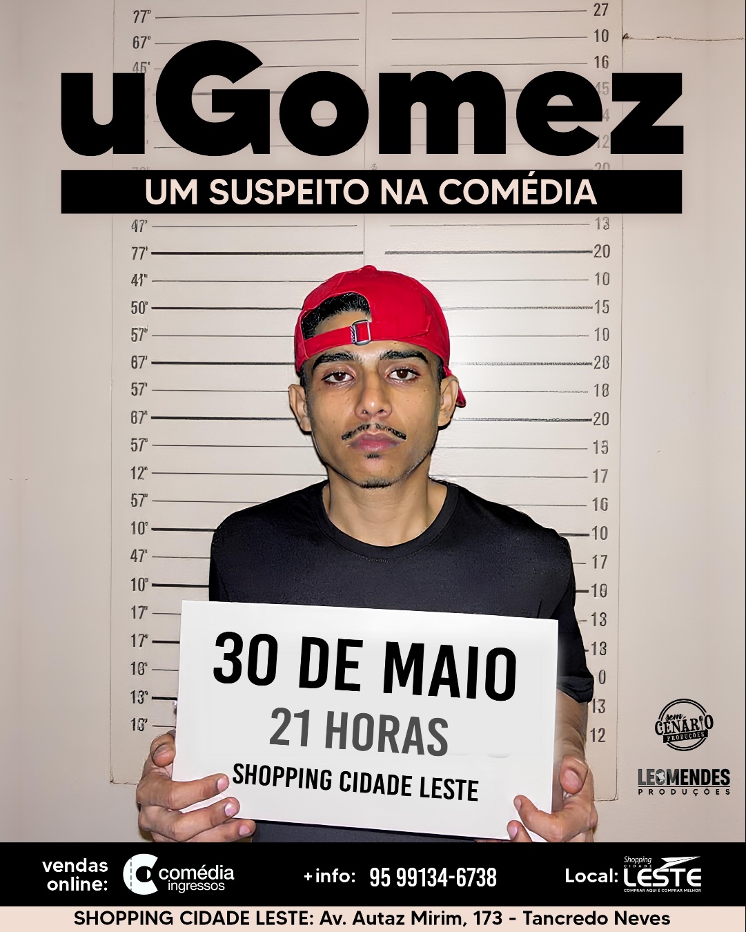 Humorista uGomez apresenta show de stand up no Shopping Cidade Leste em 30 de maio — O humorista uGomez sobe ao palco no dia 30 de maio para uma apresentação especial de stand up comedy no Shopping Cidade Leste. A proposta do show é levar alegria ao público com histórias cotidianas tiradas das próprias vivências do artista. No espetáculo, uGomez mergulha em temas pessoais com muito bom humor. O roteiro passa pela infância, situações de preconceito, os processos que marcaram sua trajetória e os bastidores da carreira. A ideia é criar identificação com a plateia através do riso e de reflexões bem-humoradas sobre o dia a dia. Serviço • O quê: Show de stand up com uGomez • Quando: 30 de maio de 2026 • Onde: Shopping Cidade Leste – Manaus/AM • Ingressos: Disponíveis no link da bio do Instagram oficial do artista: [@ugomez_] Sobre o artista uGomez vem se destacando na cena do humor com textos autorais que transformam experiências reais em comédia. Seu trabalho é marcado pela conexão direta com o público e pela capacidade de rir das próprias histórias.