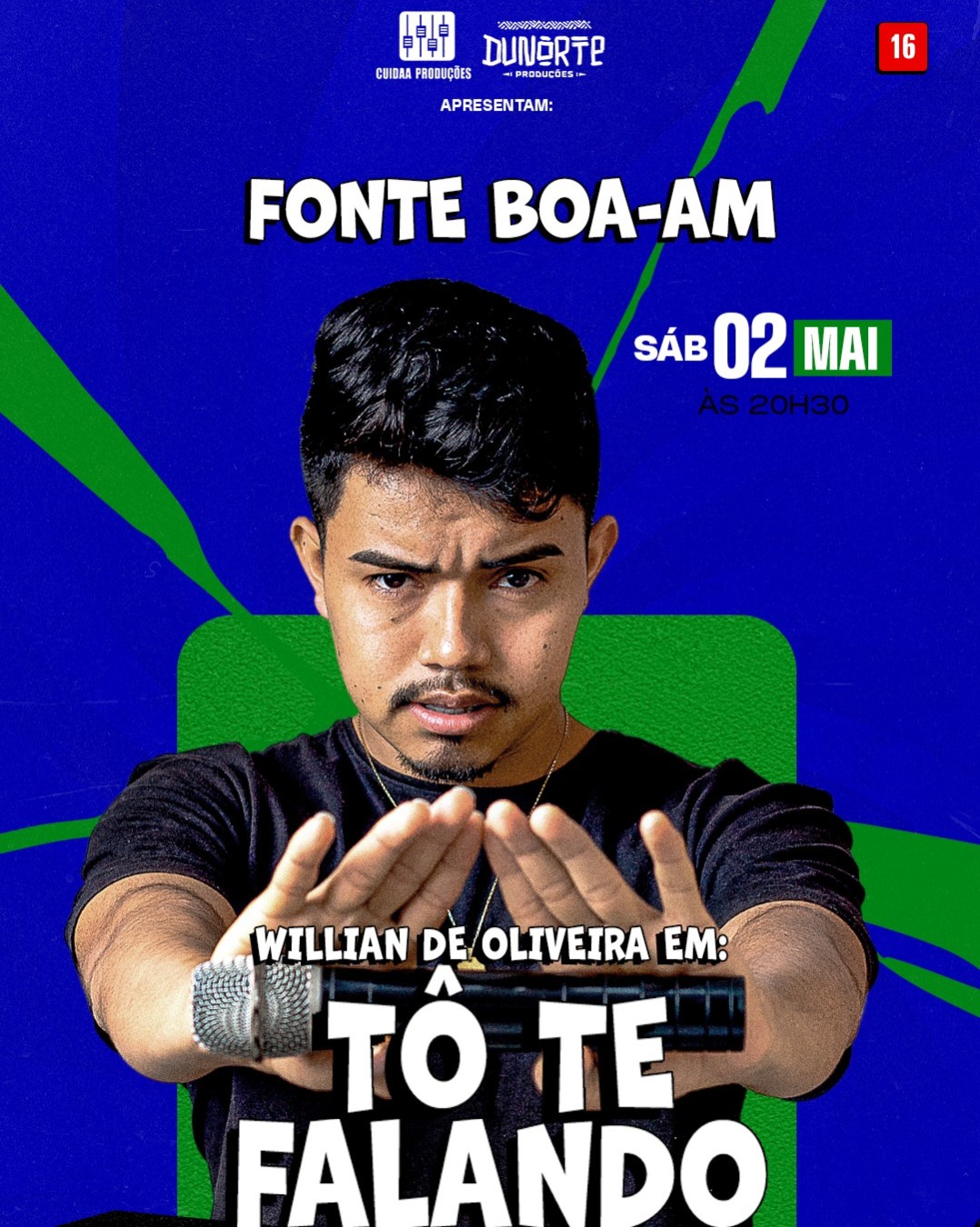No show “Tô Te Falando”, Willian de Oliveira traz ao palco histórias do cotidiano, observações afiadas e um estilo direto que garante risadas do começo ao fim.