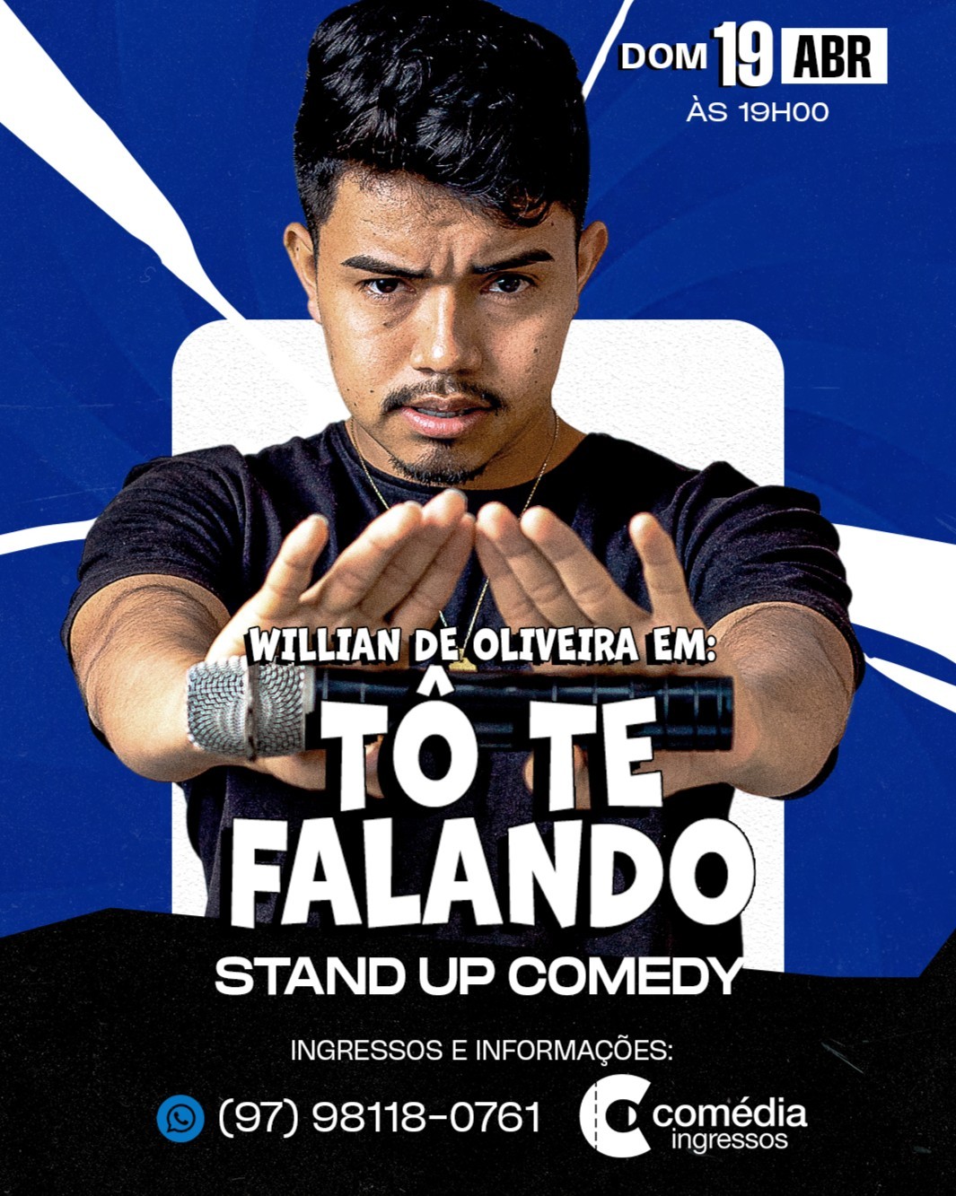 No show “Tô Te Falando”, Willian de Oliveira traz ao palco histórias do cotidiano, observações afiadas e um estilo direto que garante risadas do começo ao fim.
